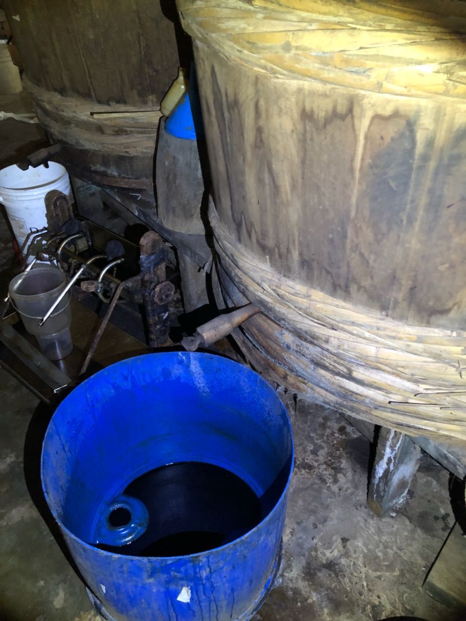 Ao entrarem no imóvel, os investigadores encontraram diversos tonéis, alguns de plástico, matéria-prima e grande quantidade do produto, parte dele já pronto para ser comercializado. Também havia uma mesa com um galão de água de 20 litros contendo shoyo.