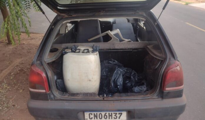 O vigilante percebeu que havia um veículo VW Gol Preto, com o porta malas aberto, e um tambor de cor branca, com óleo diesel em seu interior, que estava sendo usado para retirar combustível dos maquinários da empresa, porém os suspeitos evadiram-se do local, tomando rumo desconhecido.