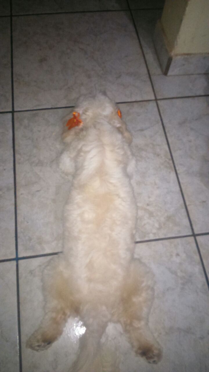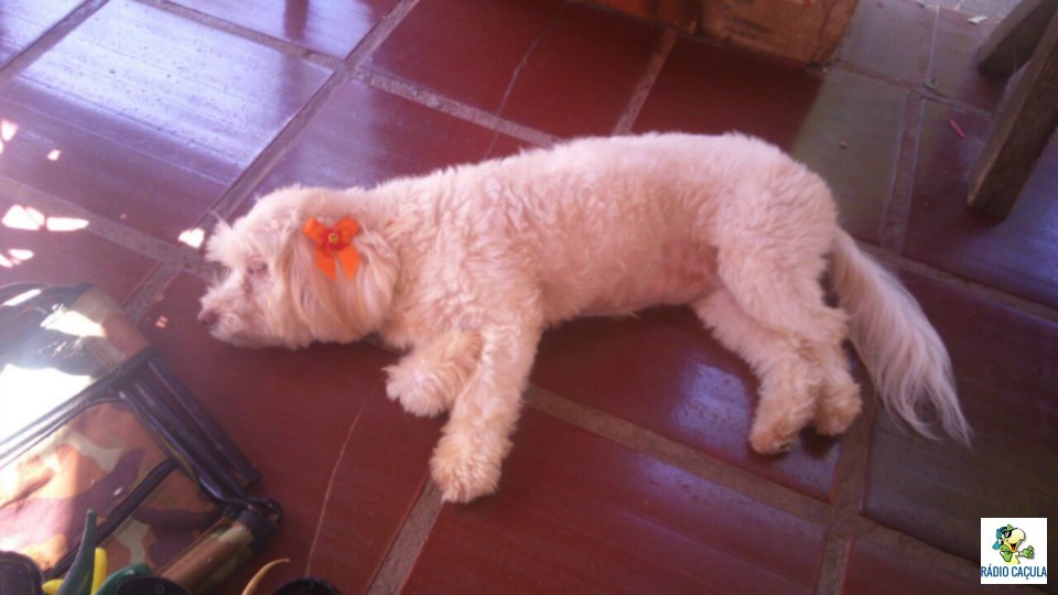 Uma internauta encontrou uma cachorrinha próxima à rodoviária de Três Lagoas de raça parecida com Poodle ou Maltês e deseja muito entregá-la aos verdadeiros donos.