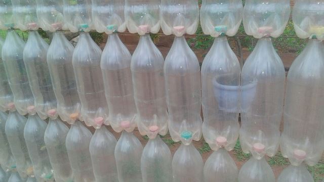 Segundo informações, o proprietário da residência mantém o quintal em total harmonia com a natureza e, decidiu levantar este muro para fazer sua parte na preservação ambiental. O muro é composto de eucalipto tratado, arame e garrafas PET (todas transparentes), sendo que em cada uma, foi colocado um pedaço de papel com uma frase de amor e esperança.