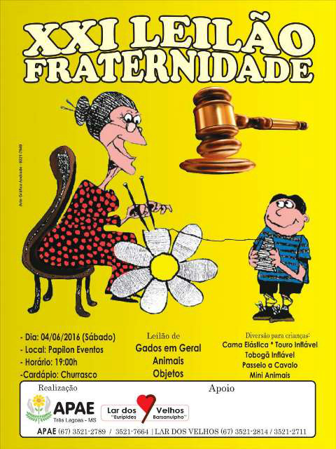No próximo sábado (4), acontecerá o XXI Leilão da Fraternidade, evento realizado em prol do Lar dos Velhos Eurípedes Barsanulpho e a APAE de Três Lagoas.